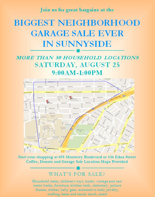 Sunnyside Neighborhood-Wide Garage Sale – Join us for great bargains On August 21, 2012 By Sunnyside Neighborhood AssociationIn Uncategorized Share this: Click to share on Facebook (Opens in new window) Facebook Click to share on Threads (Opens in new window) Threads Click to share on Mastodon (Opens in new window) Mastodon Click to share on Bluesky (Opens in new window) Bluesky Like Loading... Related