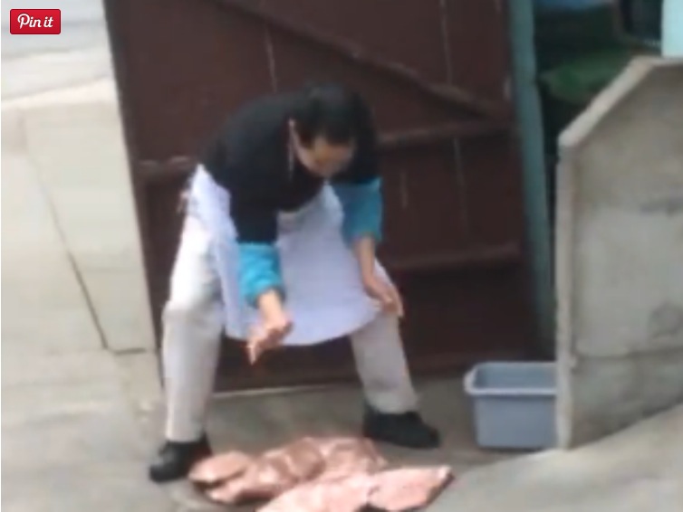 Footage from a cell phone was uploaded to LiveLeak over the weekend, showing a man slamming down a large slab of meat on the sidewalk, just outside of a local restaurant’s storage room. The video has quickly gathered over 60,000 views, just 18 hours after being uploaded.