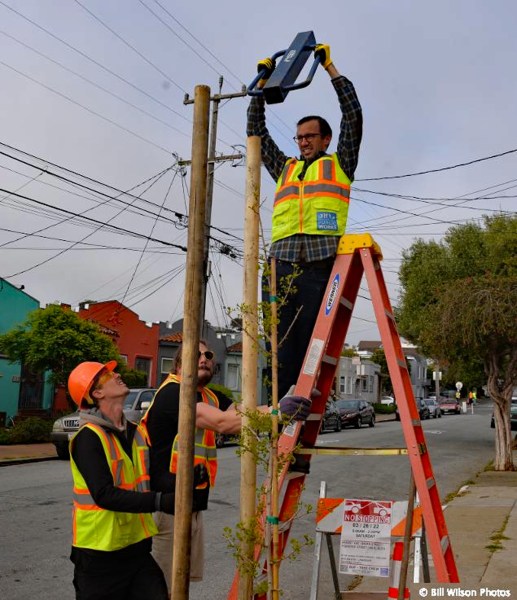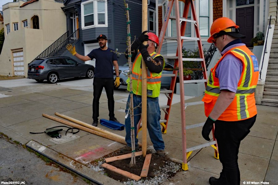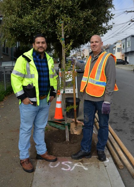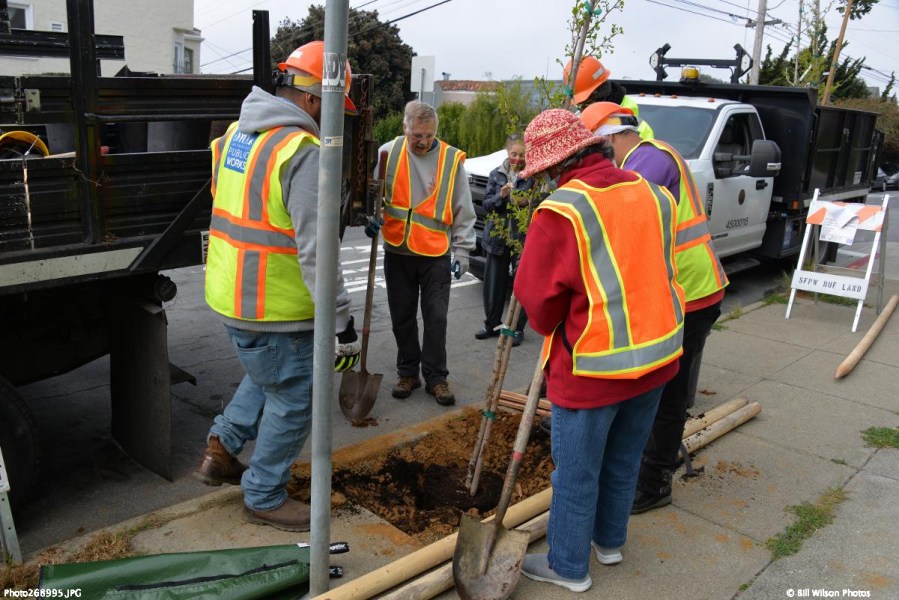 “Over the past year, Public Works has worked with the SNA to identify locations where trees could be planted. The SNA led the efforts in canvassing and recruiting people to agree to the water maintenance of the trees. Over the year we expanded the scope of the work: in some cases, creating new basins and filing in old basins that no longer met ADA compliance codes. In total, we’ll be planting 31 trees. Neighbors were allowed to choose their species tree from gingko, little gem magnolia, olive, Saratoga Bay laurel, Brisbane box, London plane tree. They have agreed to water the trees for the first three years of their life and allow them to become self-sustaining. This is a true partnership in every sense of the word and a fantastic example of how people can engage with the city to make it a more beautiful place to live.”