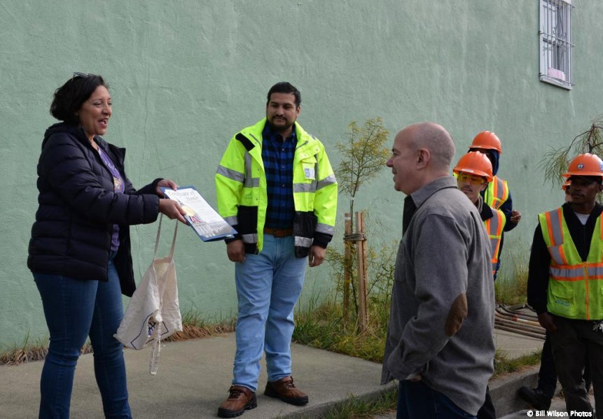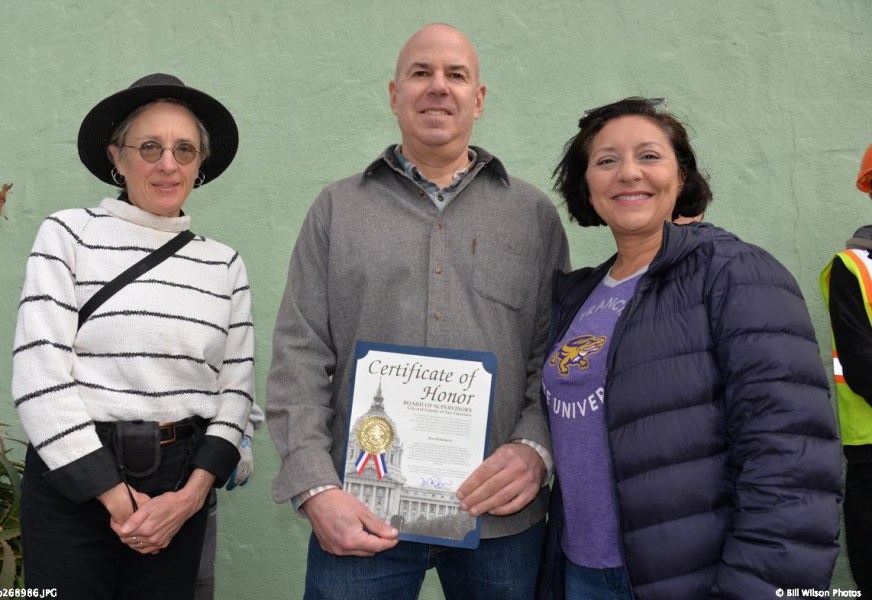 After opening words from Ramses Alvarez (center), Supervisor Melgar spoke (left), noting the encouraging progress that Sunnyside has made with greening, such as the Detroit Steps Project. Credit: Bill Wilson Photography.