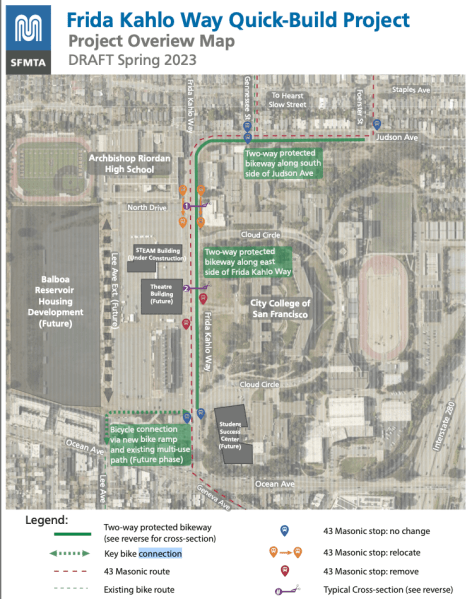 The proposed changes will remove 50 parking spaces on the street from Ocean Avenue to Foerster Street.