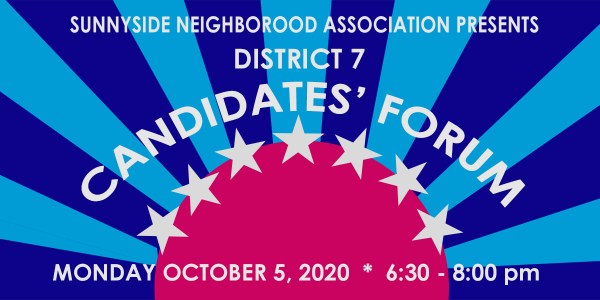 On Monday October 5th, Sunnyside Neighborhood Association is sponsoring a Candidates’ Forum for District 7. 6:30 – 8:00 PM, via Zoom. All seven candidates will be present. Subjects will range through these areas of local interest: Monterey commercial development, the Balboa Reservoir development, housing and zoning, property crime, City College, participatory budgeting, and Covid-19 policy.