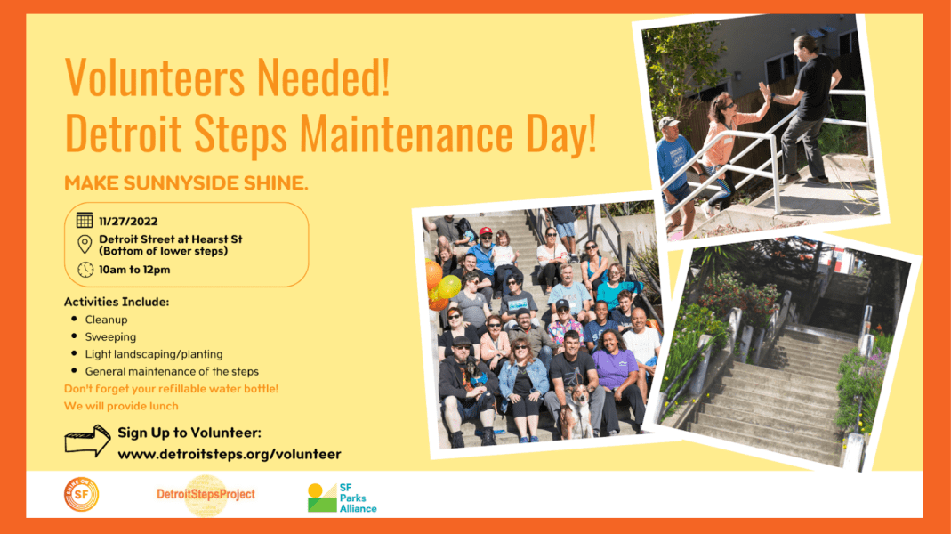 Looking for volunteers to help Sunnyside shine! Next volunteer day is Sunday, November 27th, 10 am – 12 pm. Sign up and learn more at https://www.detroitsteps.org/volunteer.