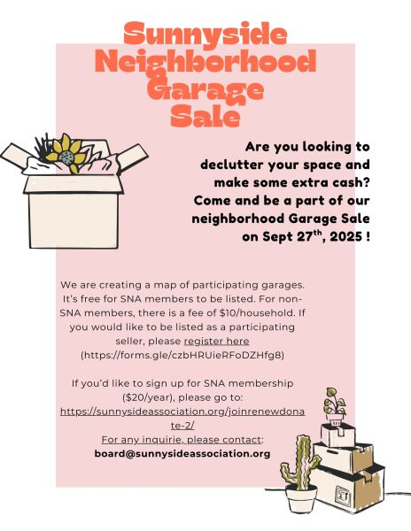 SNA is excited to bring the neighborhood garage sale back on September 27th 10am to 2pm! We will be creating a map of participating garages and sharing it with SNA neighbors and beyond. It’s free for SNA members to be listed on the map. For non-SNA members, there is a fee of $10/household. If you would like to be listed as a participating seller, please register here!